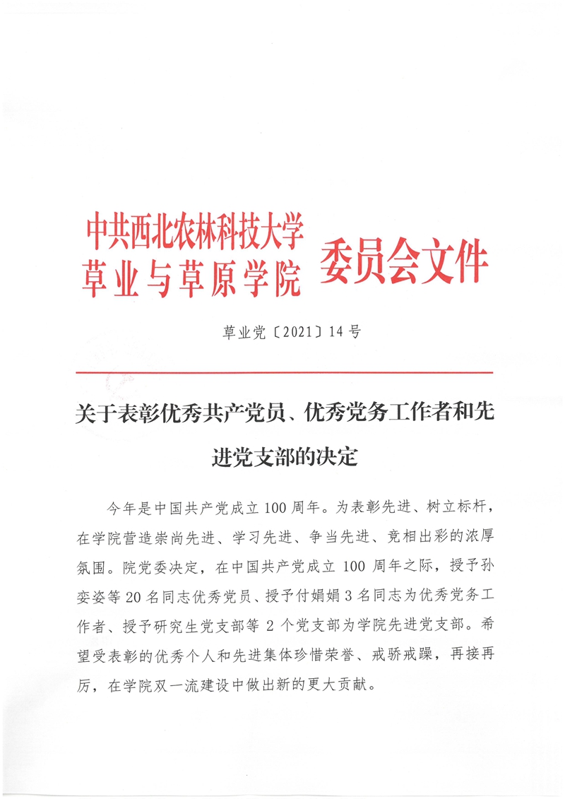 关于表彰优秀共产党员、优秀党务工作者和先进党支部的决定