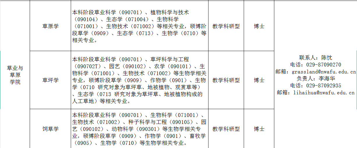 动物营养、牧草加工等方向博士及博士后优先考虑。
