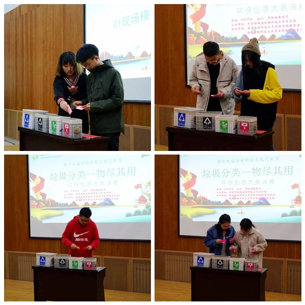 锻炼动手能力,奏响实践创新“交响乐”。参赛作品共分工艺品设计、海报创作、文学艺术、项目申报、废弃快递包装箱创意设计五种形式。同学们将快递盒、废旧纸张回炉重造,充分发挥创意灵感,结合废物利用理念,设计出了垃圾分类箱、瓦楞纸钟表、日历、一系列精美实用的作品。参赛队员杨成文表示,本次活动加深了自己对垃圾分类的认识,提升了自身审美,锻炼了动手能力,培养了团队协作能力。杨凌环保局副局长成鸿伟在比赛最后总结时表示,垃圾分类,任重而道远。践行绿水青山就是金山银山理念,需要从自身做起,从身边小事做起,积少成多,为中国的可持续发展做贡献。