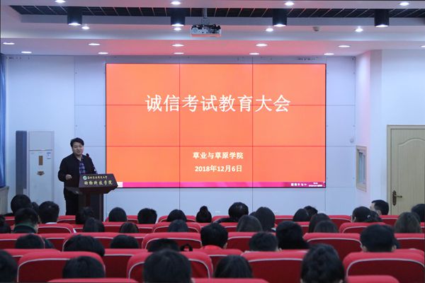 党总支副书记兼副院长阮鹏强调:作为青年学子,要牢记总书记对青年“爱国、立志、求真、力行”的殷切期望,积极践行社会主义核心价值观,以诚信为本。希望草业学子做好备考工作,遵守考场纪律,维护知识尊严,优化考试环境,提高考试质量,杜绝考试作弊行为,认认真真考试,堂堂正正做人。