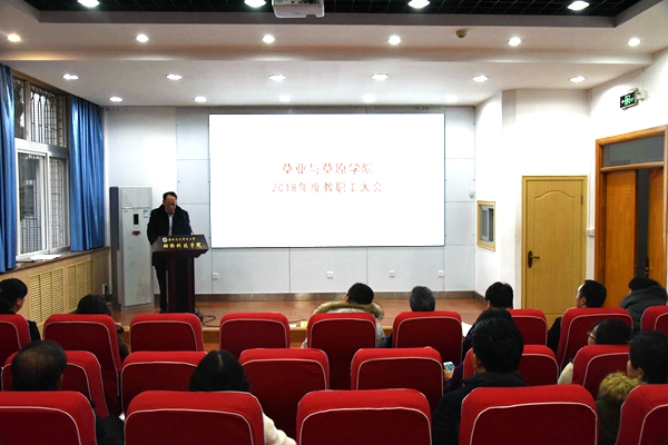 1月8日,学院在动科107会议室召开了2018年度教职工大会,全体教职工参加了此次会议。大会由学院党总支副书记(主持工作)苏蓉主持。
