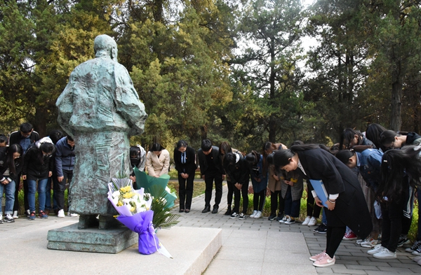 活动中,本科生党员代表张丽芸介绍了于右任、辛树枳老一辈先贤情系农业、扎根杨凌、创建西农(原西北农林专科学校)的艰辛历程,讴歌先贤前辈勇于担当民族使命、胸怀国家苍生为农业事业艰苦奋斗、无私奉献的伟大精神。本科生党员代表严俊、研究生党员代表马震珠为于右任和辛树枳先生献上鲜花。全体党员为先贤前辈默哀三分钟并三鞠躬以敬先贤并寄哀思。