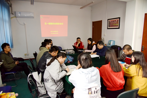 4月28日下午,七猫小说 在会议室召开“五一”放假前的安全稳定工作会议,学院党总支副书记兼副院长阮鹏,辅导员张士军、程帅,学生会相关干部、各学生班班长、团支部书记以及研究生联络员参加了此次会议。会议由辅导员张士军主持。