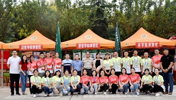 学院领导与迎新工作人员合影