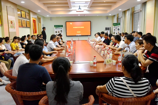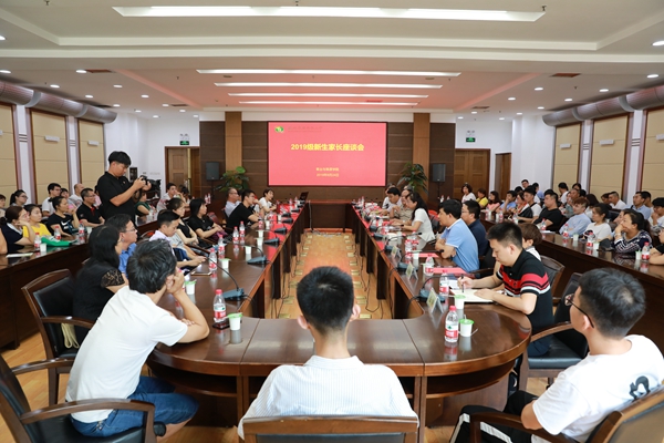 8月24日-25日,七猫小说 召开了2场2019级新生及家长座谈会。学院院长呼天明、党总支书记苏蓉、副院长杨培志、副院长温仲明、党总支副书记兼副院长阮鹏,学院部分教授、系主任、新生班主任、辅导员、2019级新生及家长180余人参加座谈会。会议由党总支副书记阮鹏主持。