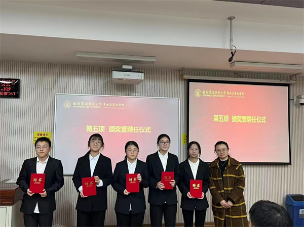 学院团委书记黄巾凌老师、学院团委副书记王辉老师2023-2024学年学风评议员代表颁发聘书并合影留念。