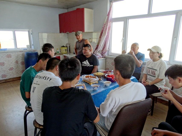 上午,同学们抵达萨麦苏木阿尔塔拉地区开始走访调研牧民家庭,在调研过程中,队员们受到当地牧民同胞的热情招待,品尝当地特色美食——奶豆腐、奶茶和果子。与当地牧民宝音的交流中,队员们大概了解到东乌珠穆草原沙化的情况,之后队员与牧民实地勘察一些已经人工恢复的草场,尽管东乌珠穆草原沙化的情况不容乐观,但在政府、牧民与当地企业的共同努力之下,草原沙化已经得到些许遏制。