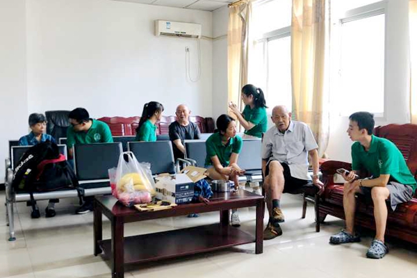 队员们和王爷爷交流并询问他的身体状况
