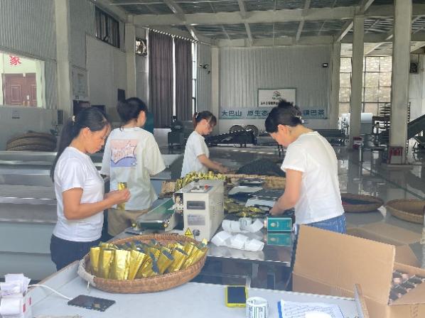 最后,实践队参观了芳悦公司的电商平台与农特产品直营店。公司通过线上直播销售茶叶、农特产品实现了小农户对接大市场,将茶叶及其他镇巴优质农产品销往全国各地,公司带领百余人从事茶叶种植,辐射带动周边200余农户参与茶叶生产,通过履行社会责任促进了乡村振兴。李茂芳讲到,西北农林科技大学园艺学院的专家教授经常到茶园进行技术指导、经验传授,西农研究生助力团成员通过直播、电商等形式拓宽了销售渠道,西农的科技力量也进一步促进了镇巴当地茶产业的良性发展。