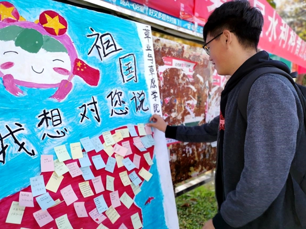 2019年10月1日,祖国迎来七十华诞,在70周年的庆祝活动上,威武雄壮的受阅部队,礼赞英雄的庄严致敬,意气风发的群众游行,载歌载舞的纵情联欢……国庆盛典的一幕幕,让广大中华儿女热泪盈眶、心潮澎湃。为传承爱国精神,助力实现中国,草业学院实践部在党的号召下行动起来,向祖国献礼,以此传播爱国思想,展现青春风貌。