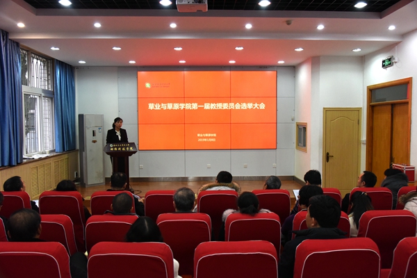 1月8日下午,草业与草原学院隆重举行第一届教授委员会选举大会。学院党政领导、全院教师参加了会议,会议由学院党总支副书记(主持工作)苏蓉主持。