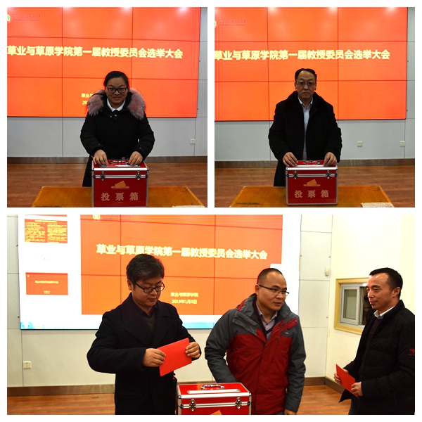在会上,院党总支副书记(主持工作)苏蓉通报了委员候选人酝酿产生过程,全院教师通过了学院教授委员会选举办法(草案)、总监票人、监票人名单、计票人建议名单。采用无记名投票方式选举产生了草业与草原学院第一届教授委员会委员。经投票选举,王佺珍、龙明秀、孙秀柱、呼天明、杨培志、温仲明、陈俊7名教师当选为草业与草原学院第一届教授委员会委员,呼天明同志代表第一届教授委员会做了表态发言。